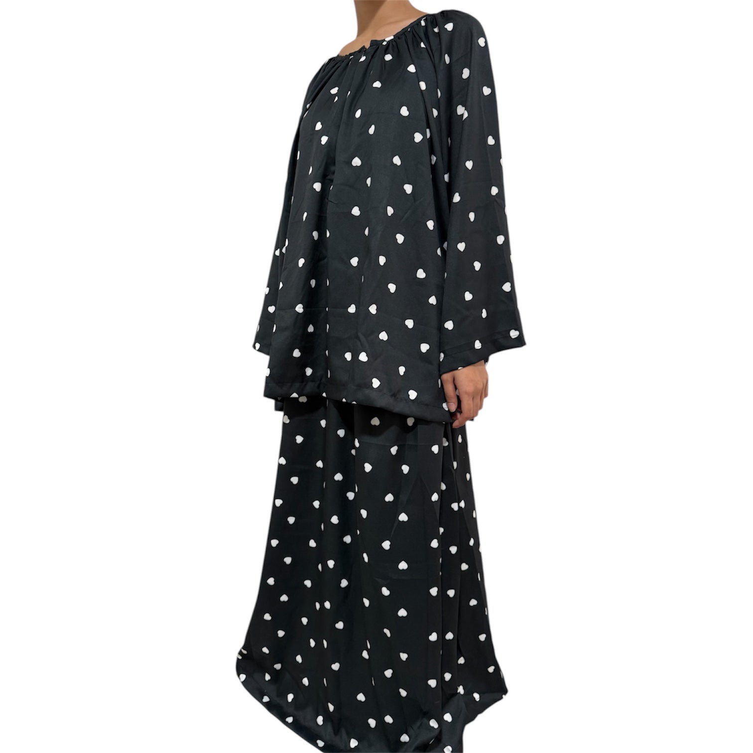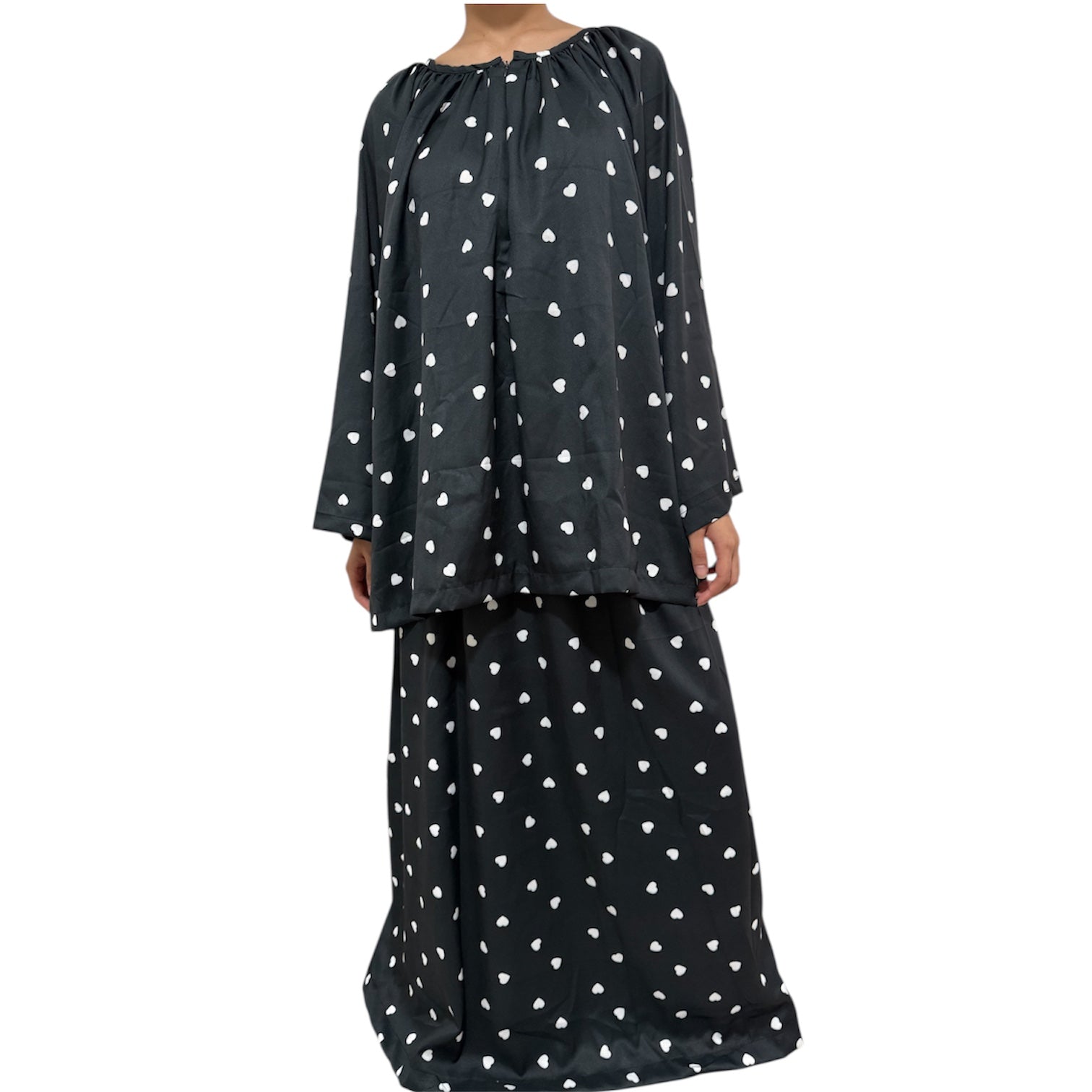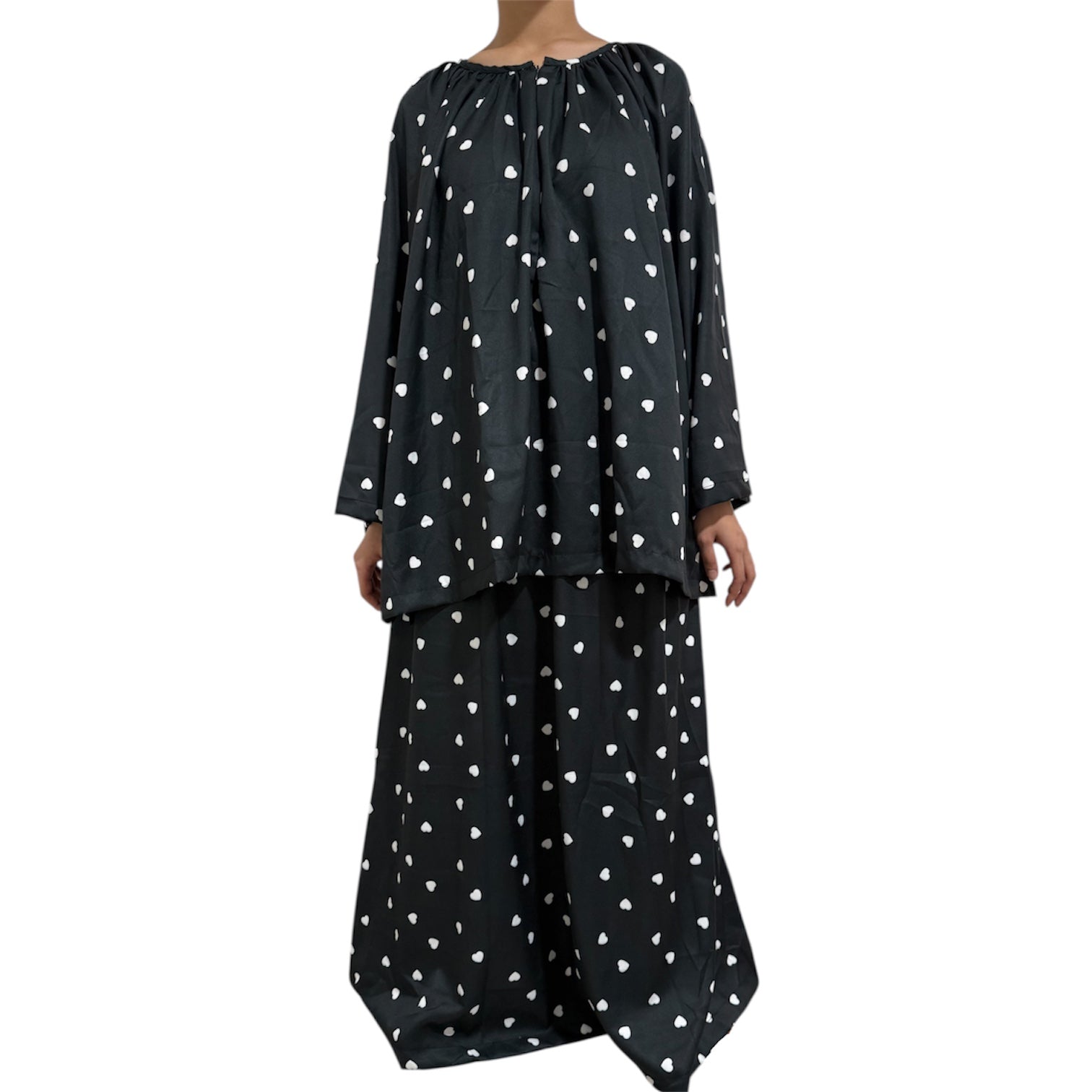 Material: Shakilla Printed Premium. This skirt co-ords comes in one size, fitting up to XXL. It requires minimal ironing, making it convenient for everyday wear.