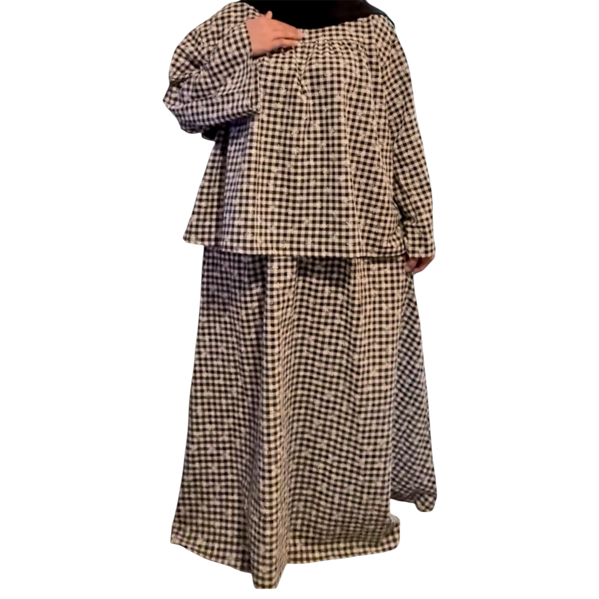 ✨ Elevate your modest style with the Shireen Bow Gingham Skirt Co Ords by SJ Modest Wear. This Muslimah fashion skirt set is crafted from cotton yard, ensuring comfort and elegance. The one size fits up to XXXL, making it versatile for various body types. Perfect for everyday wear, this set combines functionality with fashion.