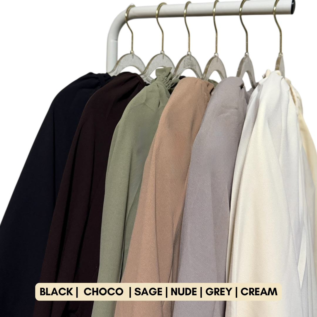 Made from Korean Crepe,SURINA is available in one size, fitting up to XXL. Perfect for comfort and versatility, it offers a versatile fit for various body types.