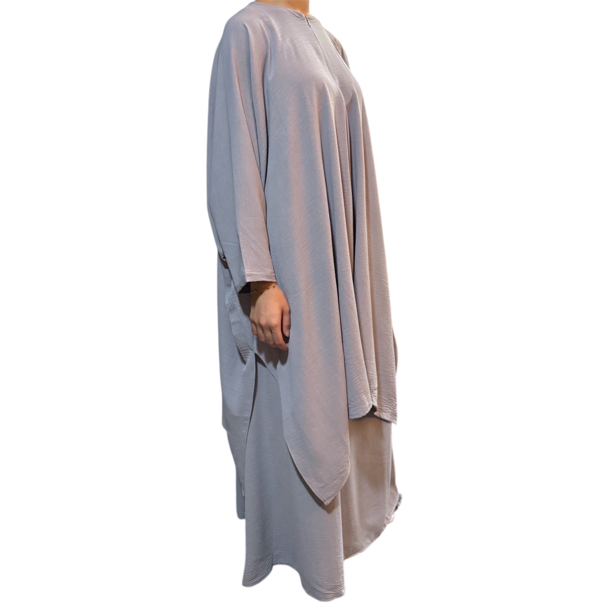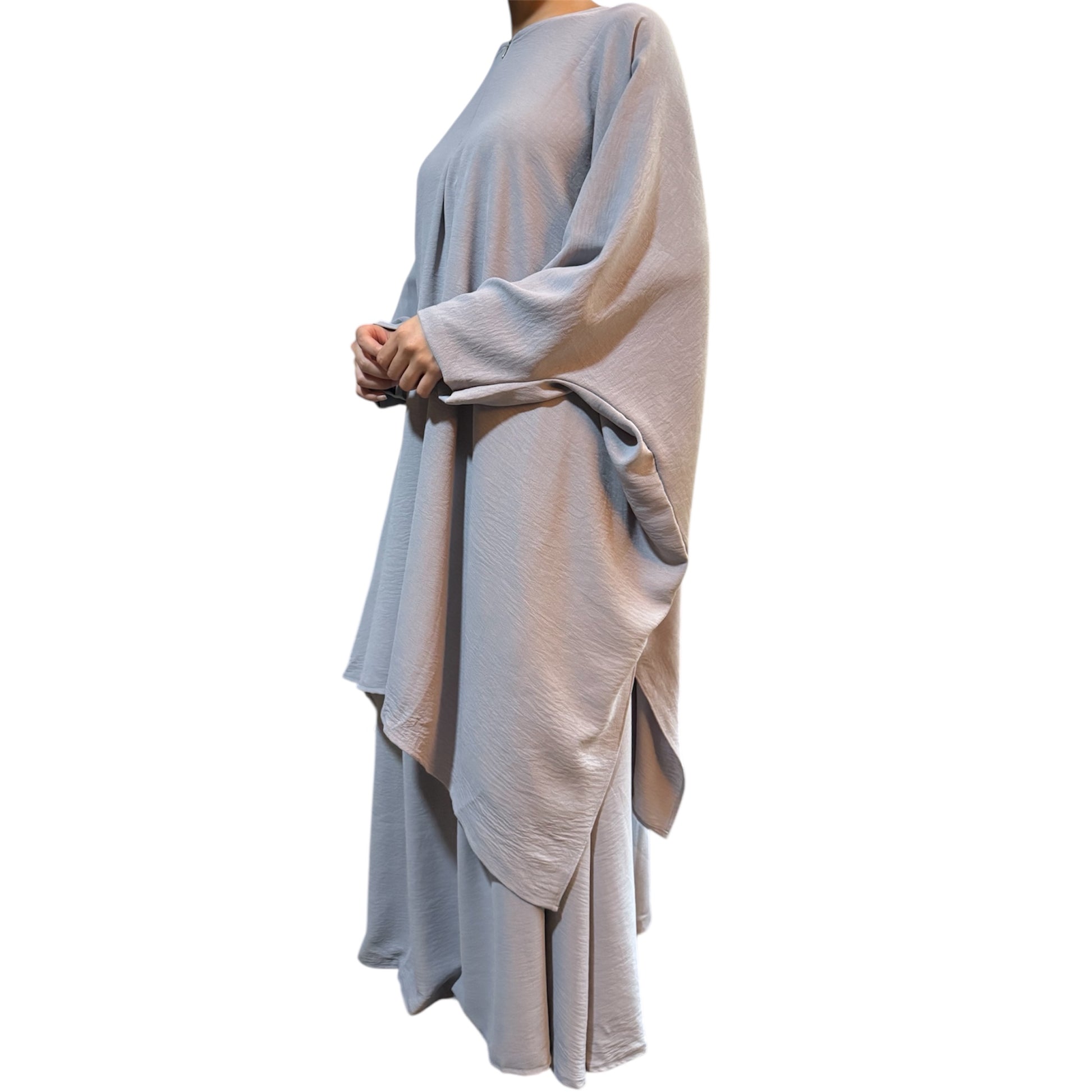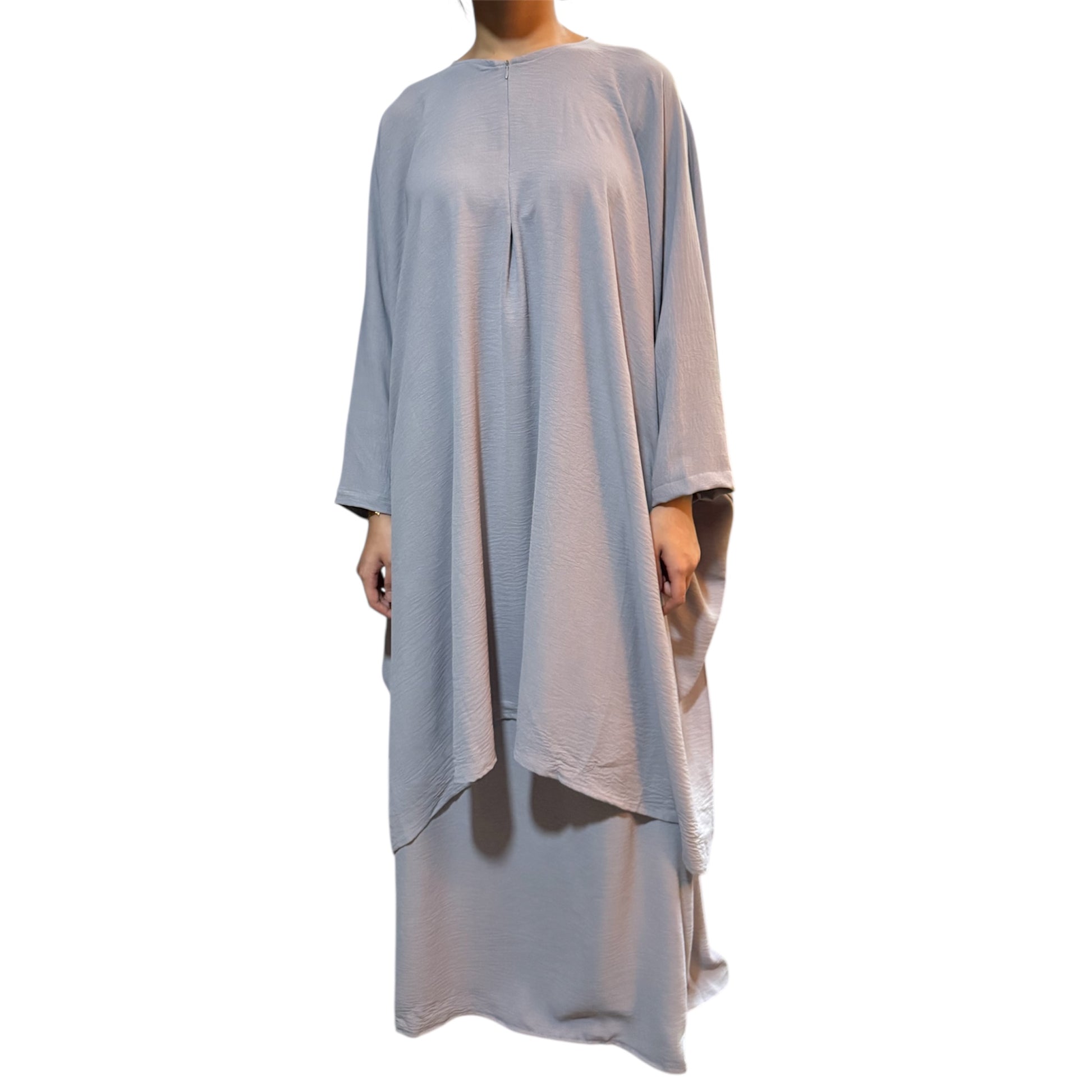 The Crinkle Airflow material offers comfortable airflow for all-day wear. The kaftan top features a round neck and front zipper, while the normal fitted sleeves add a touch of sleekness. With a flowy, oversized fit and A-line skirt, this top is perfect for all body types. Plus, the stretchable waistband ensures a comfortable and flattering fit up to size 4XL.